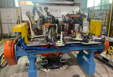 Project Name: Rear Wheel Cover Assembly Vehicle Type: Renault X1213 Takeoff Time: 90s Process Description: Robotic spot welding + automated handling + online marking